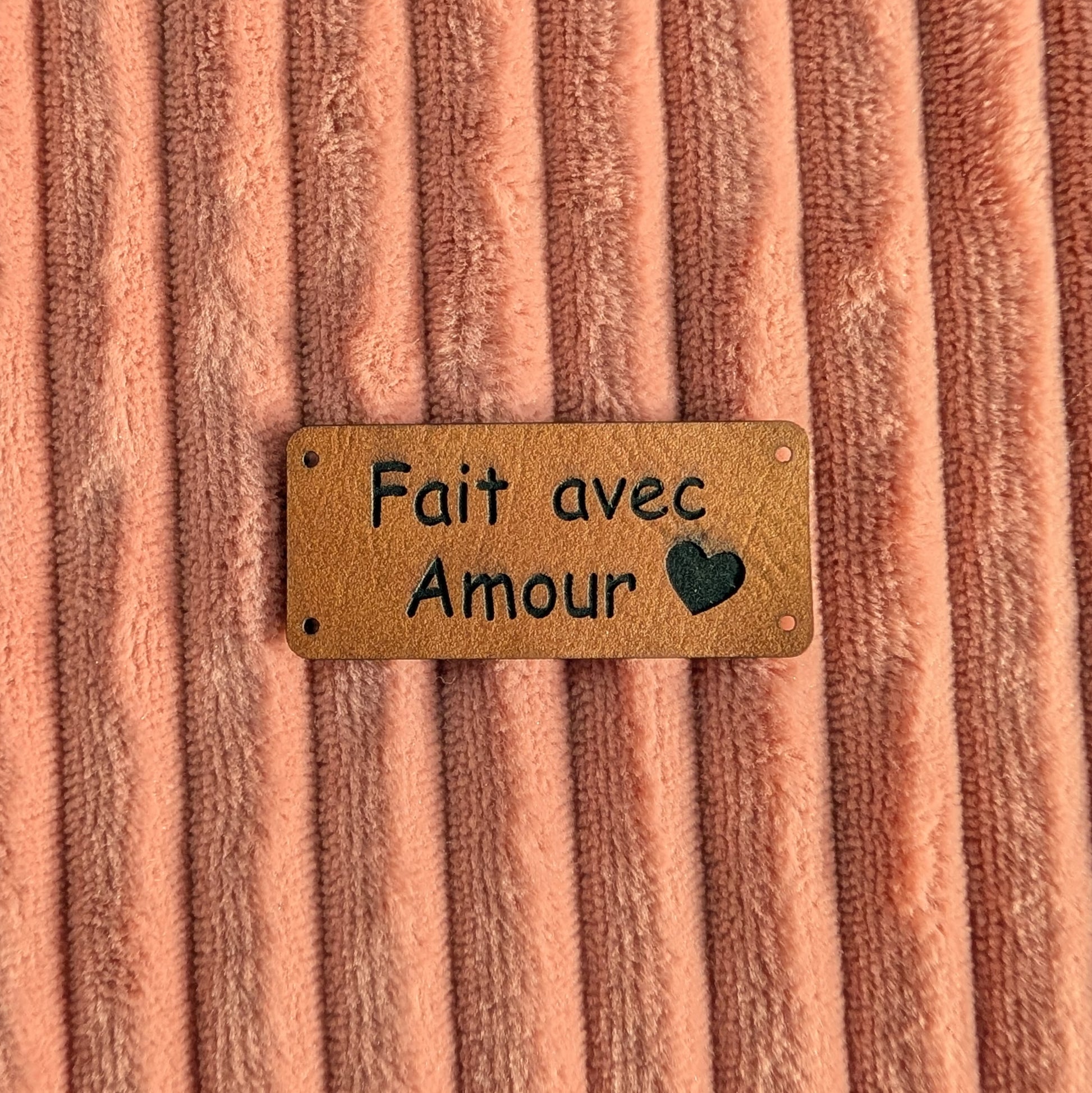Etiquette à coudre en "cuir Vegan " inscription Fait avec Amour